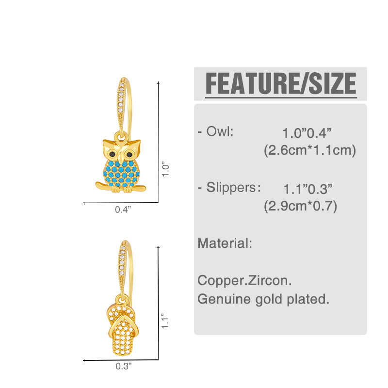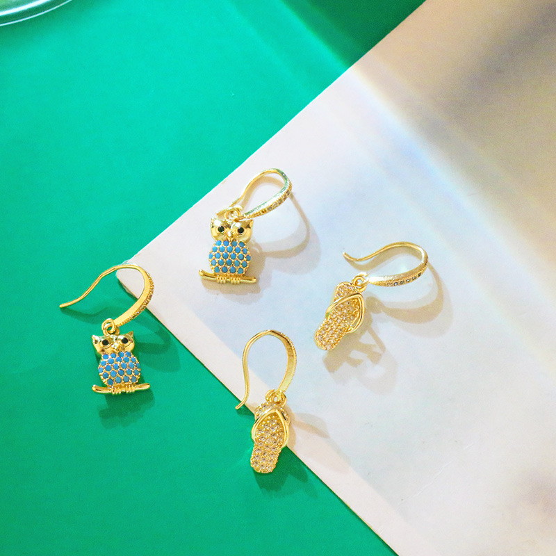 Fashionable and versatile new ear hook earrings for women European and American ethnic style inlaid zircon owl earrings erx71