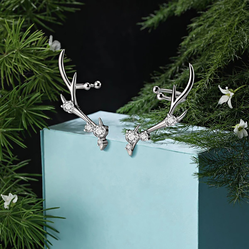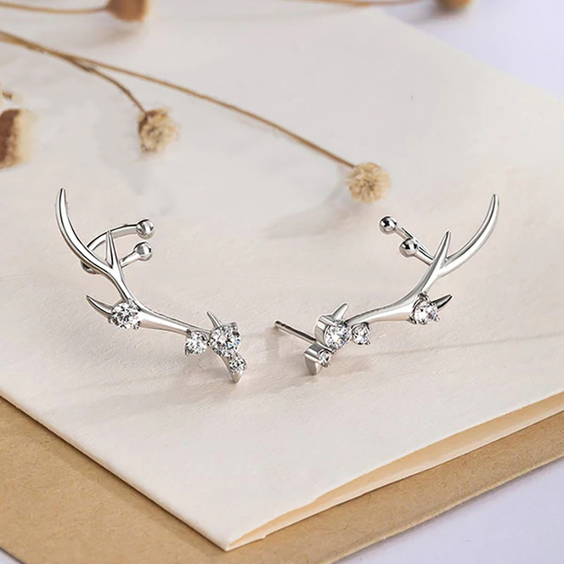 Fashionable design antler earrings for women inlaid with zircon personalized jewelry Christmas holiday matching jewelry
