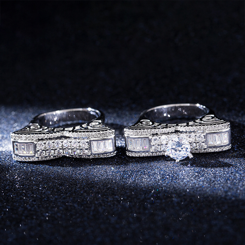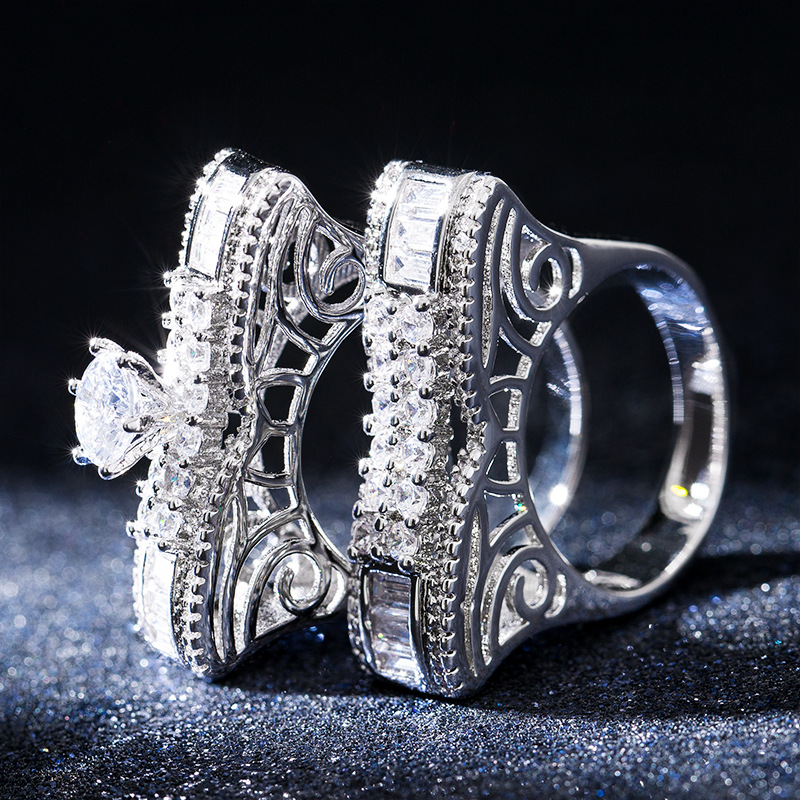 Fashionable high-end luxury couple rings, exquisite hollow zircon women's rings, full diamond micro-inlaid rings, hand jewelry