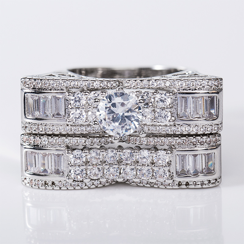 New zircon ring hollow cross four claws fashion design proposal wedding ring birthday gift ring