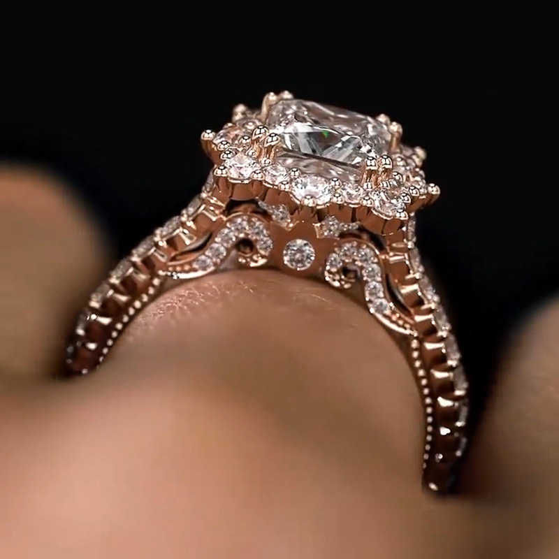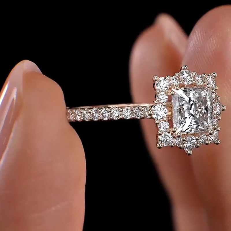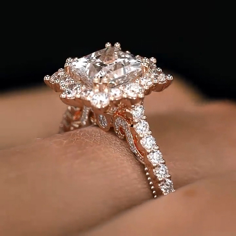 Hot selling new princess square ring European and American hot style inlaid zircon women's jewelry engagement proposal ring