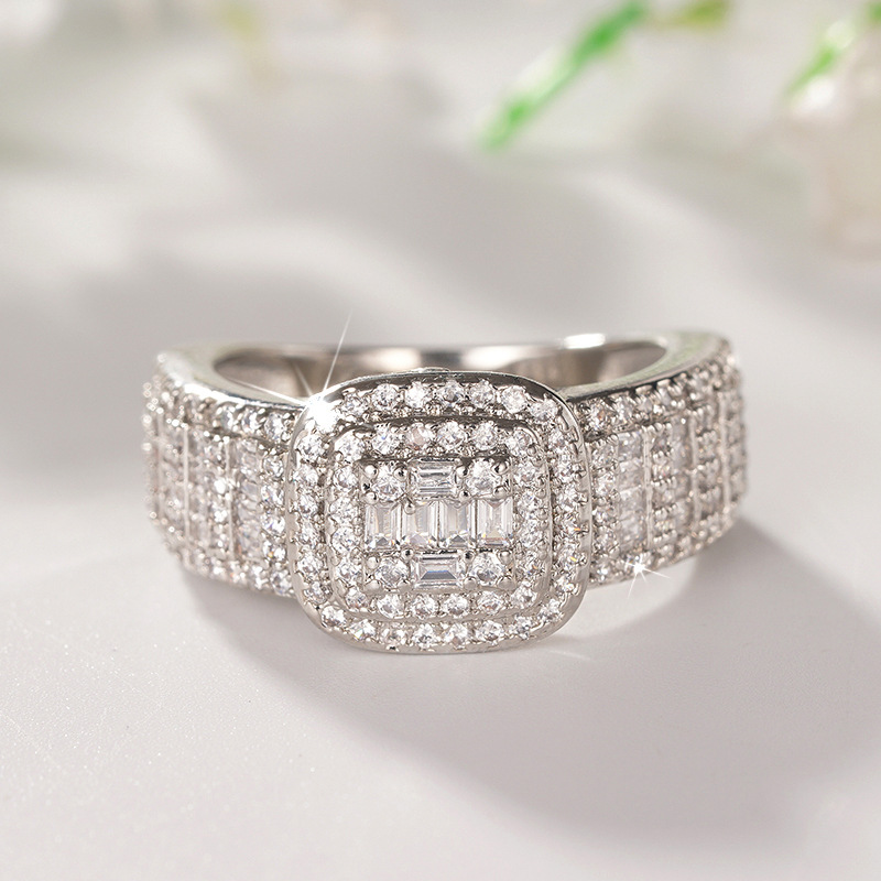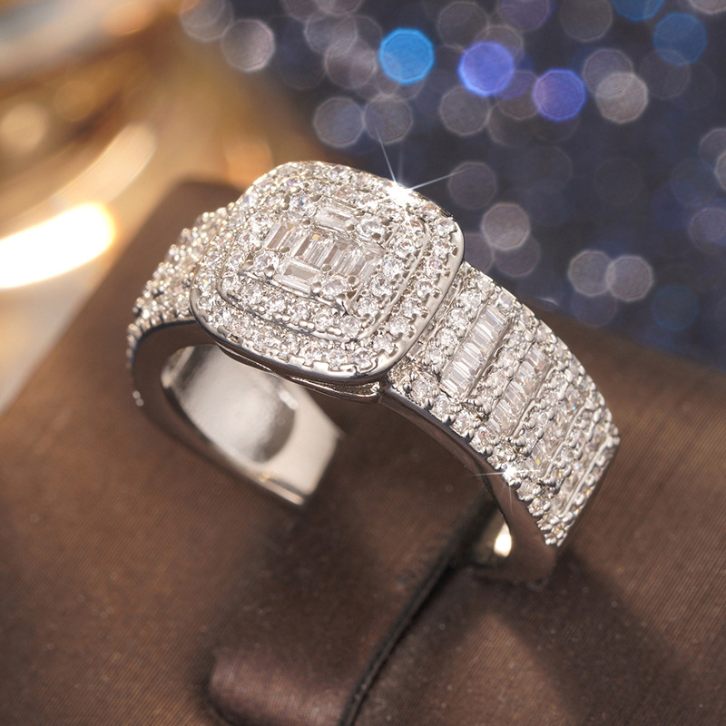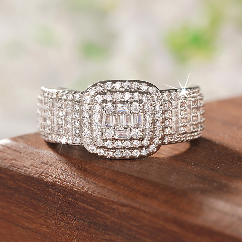 Fashionable live ring for women with micro-inlaid square fat design jewelry ring wedding dress accessories