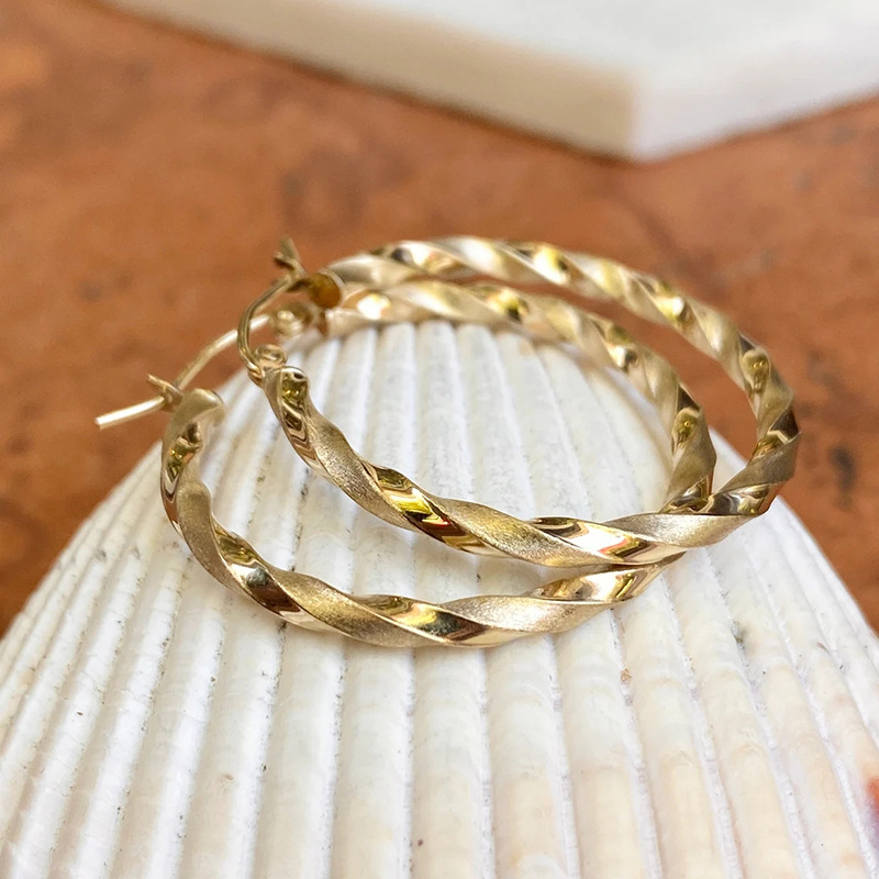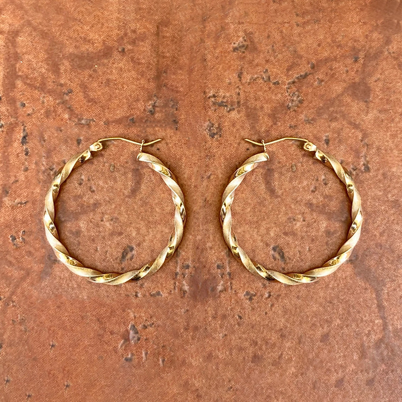 Fashionable metallic twisted big hoop earrings Hong Kong style popular twisted flower earrings retro style 80s earrings for women