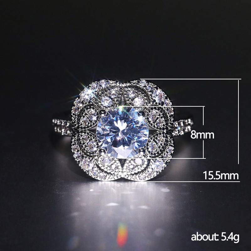 New zircon ring hollow cross four claws fashion design proposal wedding ring birthday gift ring