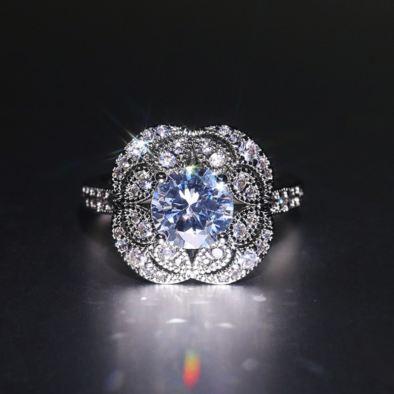 Fashionable national style jewelry retro flower zircon ring exquisite flower round diamond women's ring