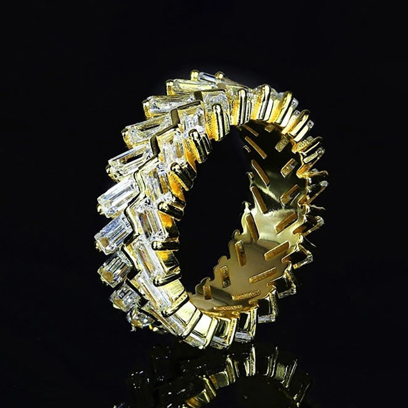 Fashionable new light luxury ring super flash trendy personality design staggered ring temperament men and women's same ring