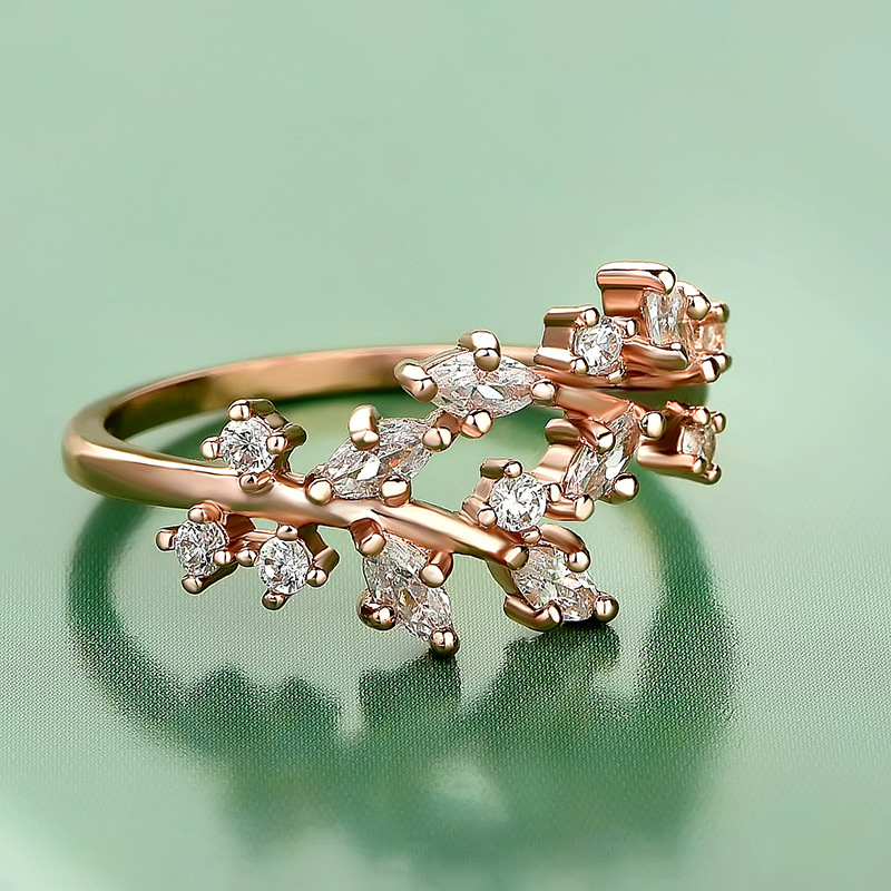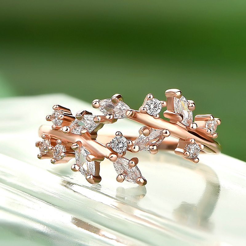 Fashionable new rose gold copper jewelry tree branches intertwined around the creative ring micro-inlaid zircon ring accessories