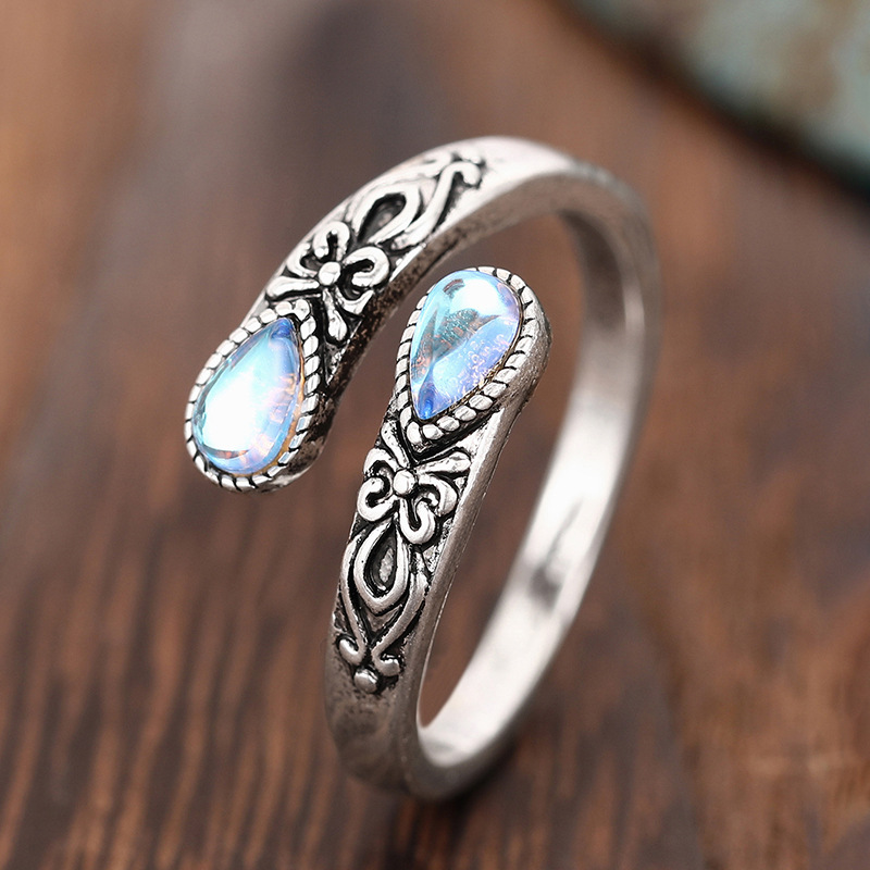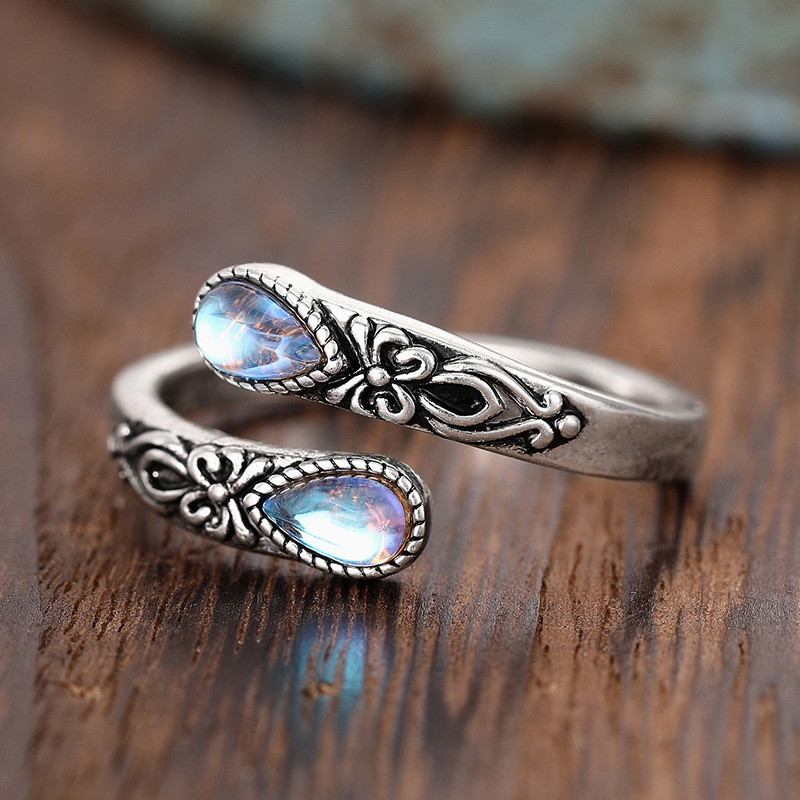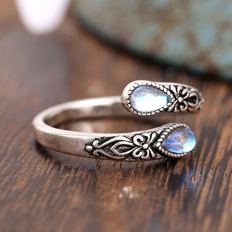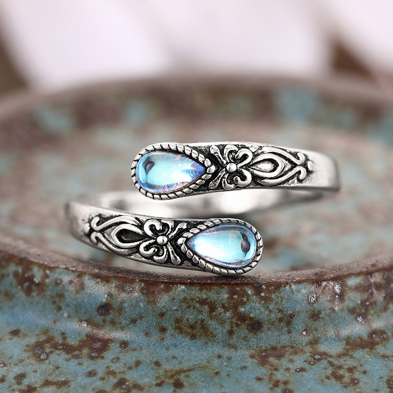 Fashionable retro European ring for women with adjustable teardrop-shaped moonstone and popular ethnic jewelry
