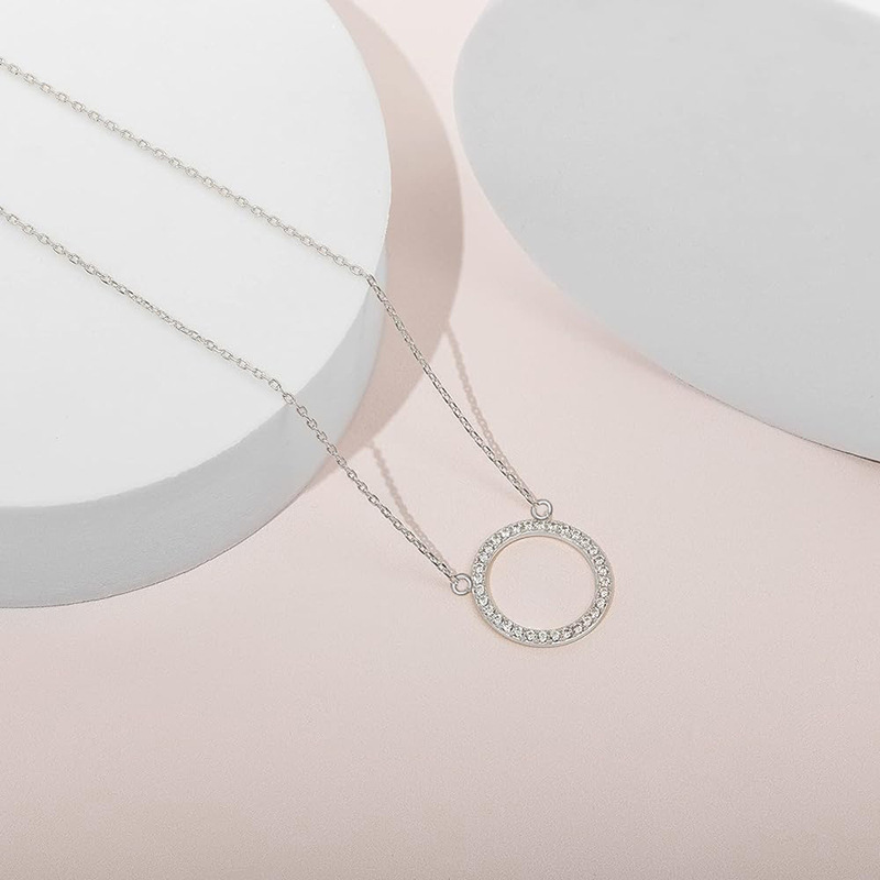 Fashionable simple necklace for women, round micro-inlaid zircon jewelry, geometric minimalist design