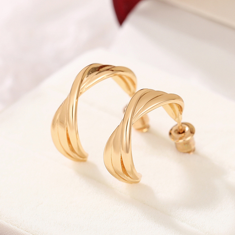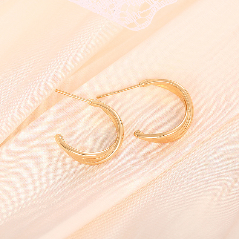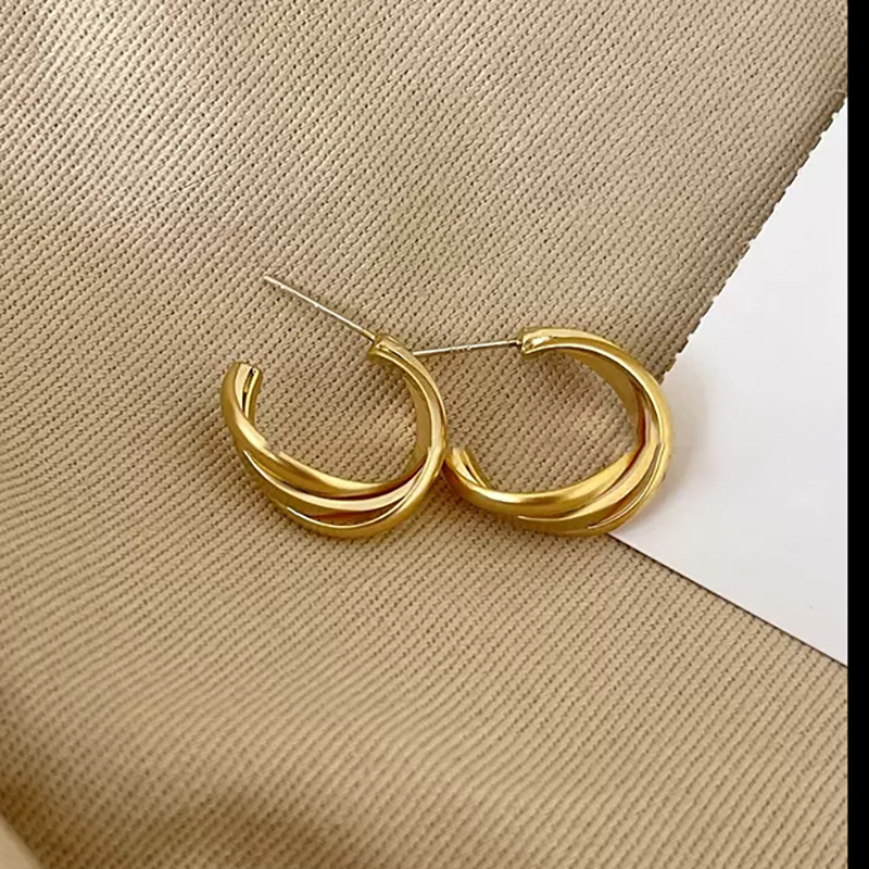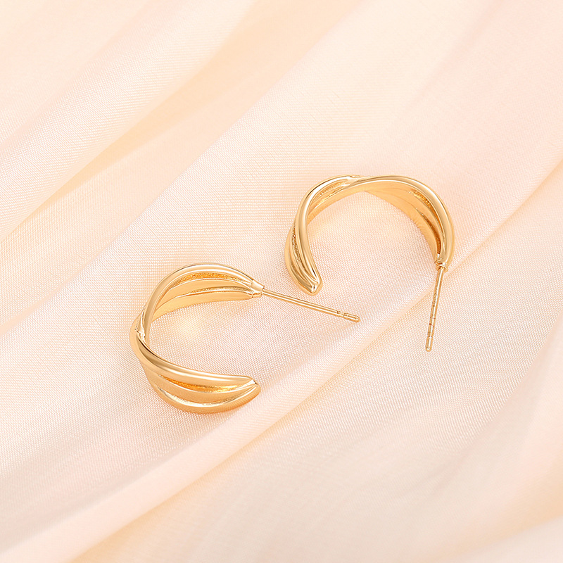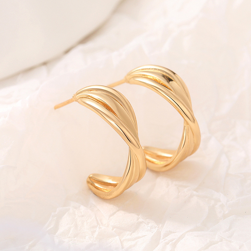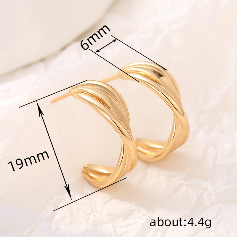 Fashionable temperament gold retro earrings for women Hong Kong style metallic designer earrings C-shaped earrings