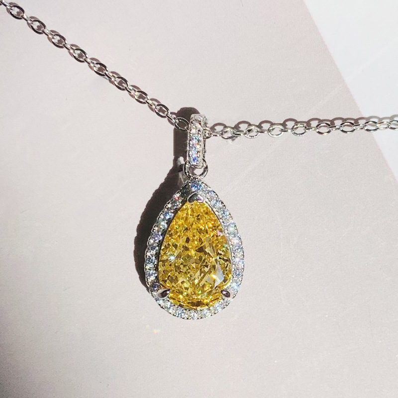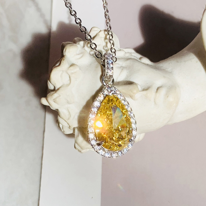 Fashionable women's large teardrop necklace with micro-inlaid super-shiny temperament luxury pendant hot-selling necklace