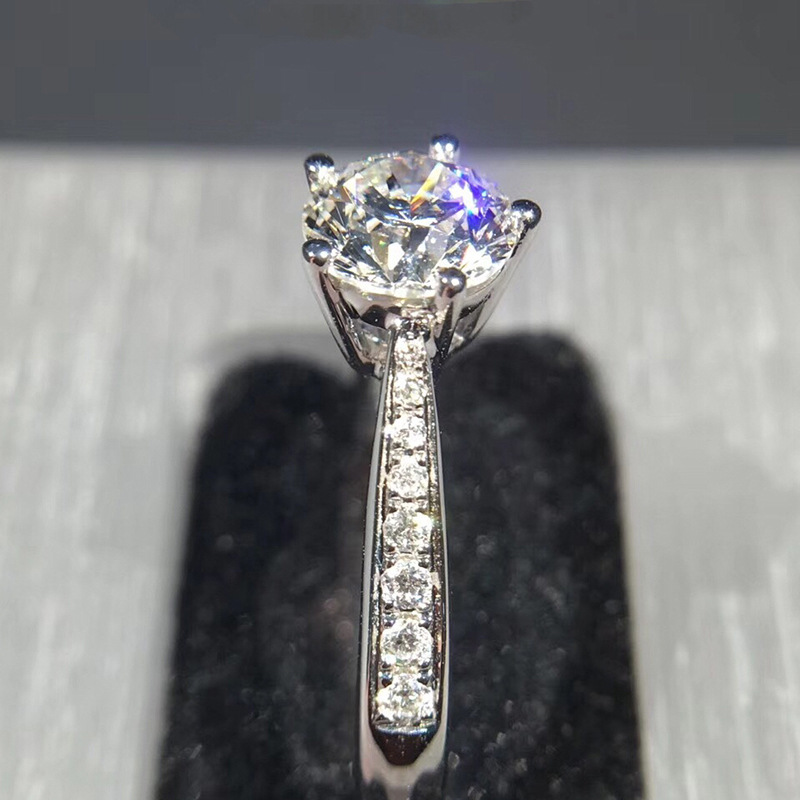 Micro-inlaid celebrity style classic all-match popular ring six-claw zircon wedding ring European and American style light luxury ring