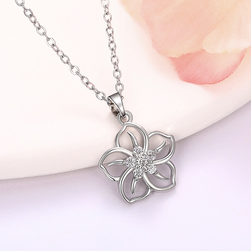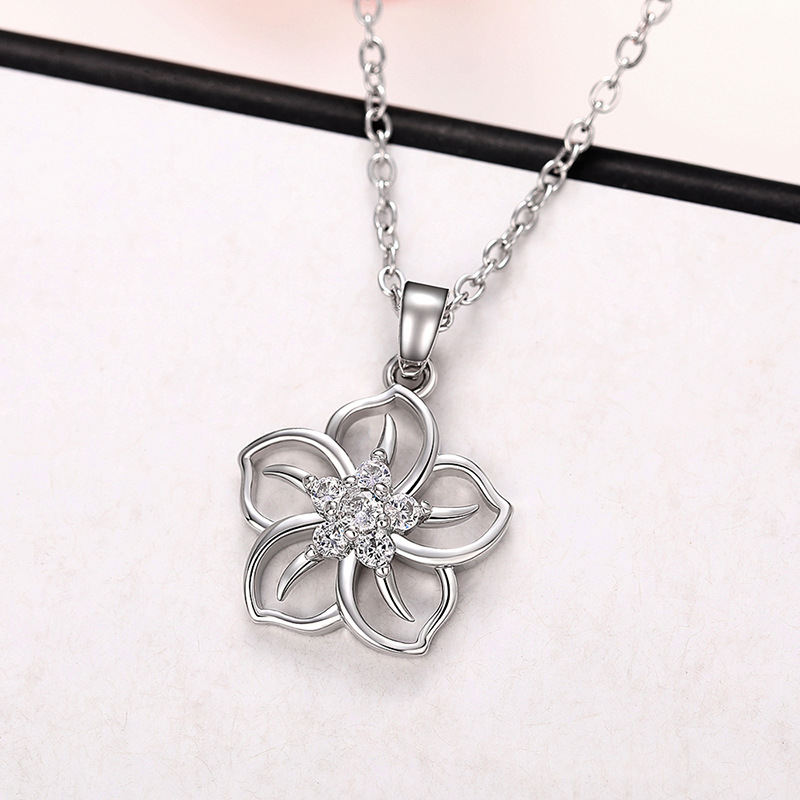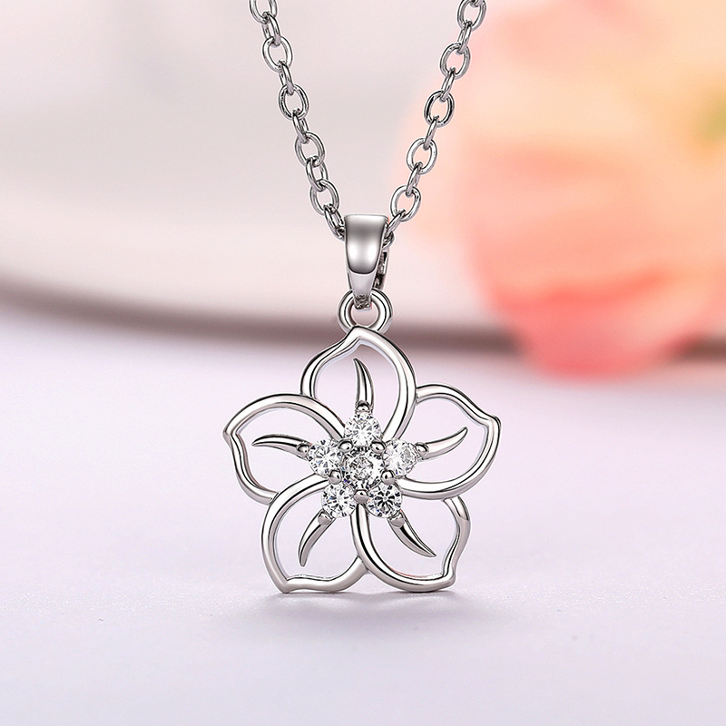 Five-petal cherry blossom necklace for women, popular sunflower clavicle necklace, Korean style zircon necklace
