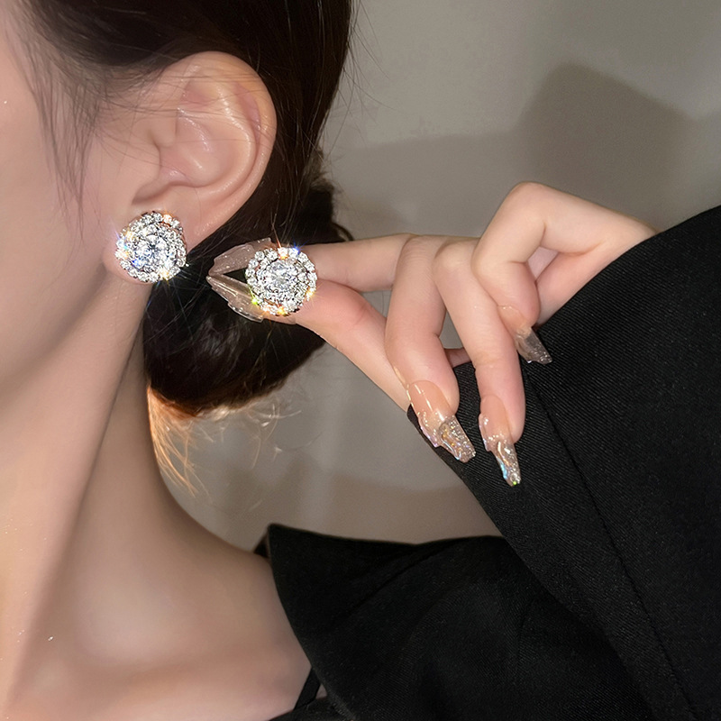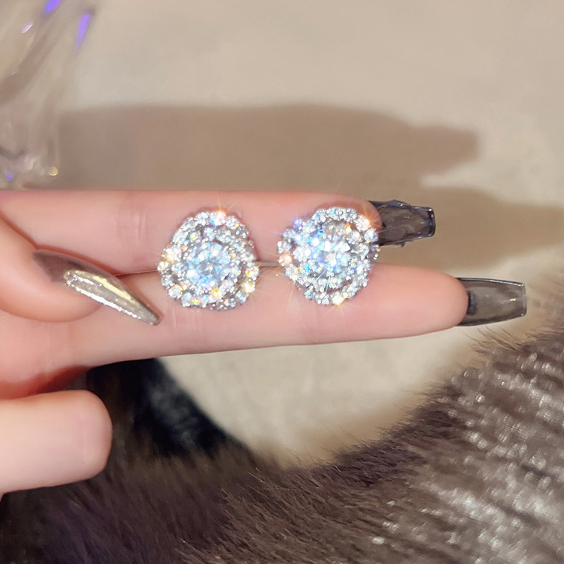 Flashing full diamond earrings for women niche design flower unique earrings light luxury temperament rose earrings