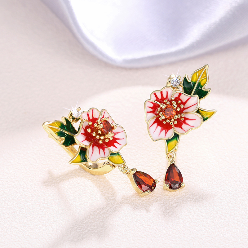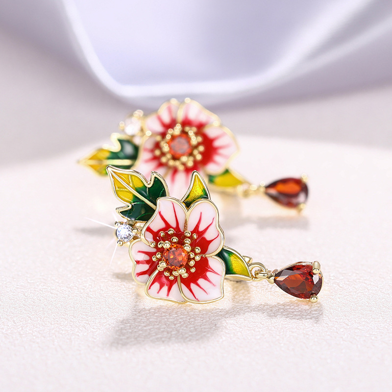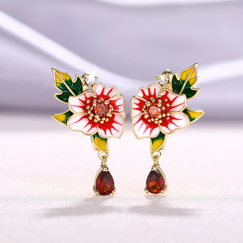 Floral flower morning glory earrings for women, teardrop-shaped geometric design earrings, fashionable and popular rural jewelry