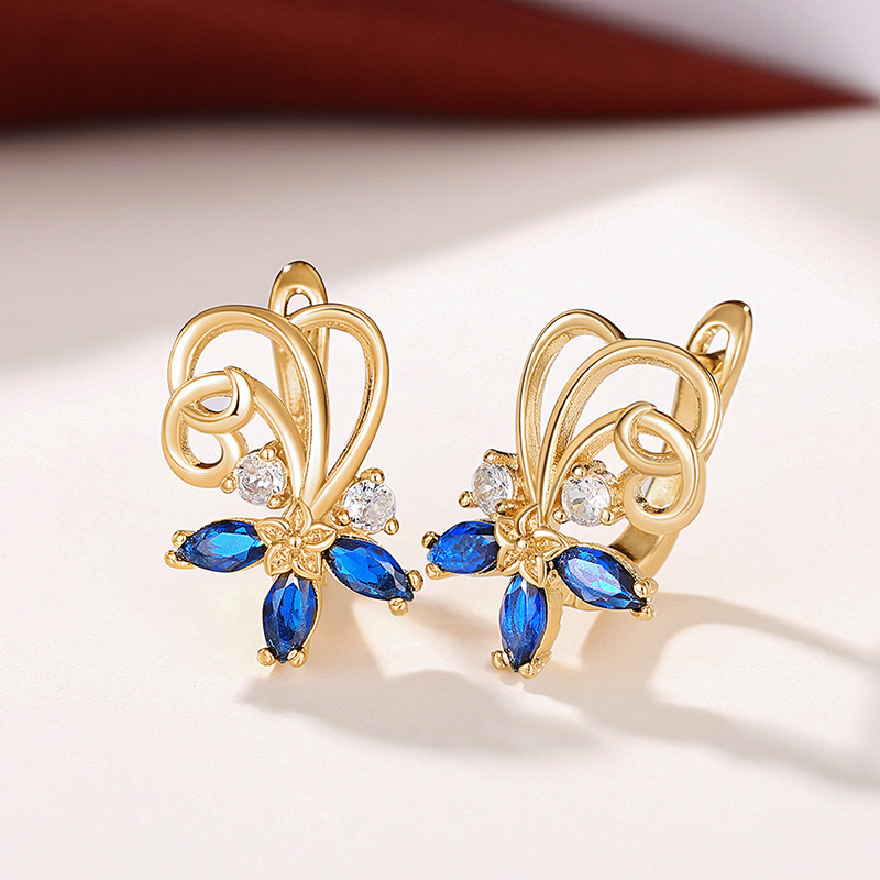 Floral series gold earrings for women with marquise zircon earrings, versatile fashion accessories, flower earrings for women