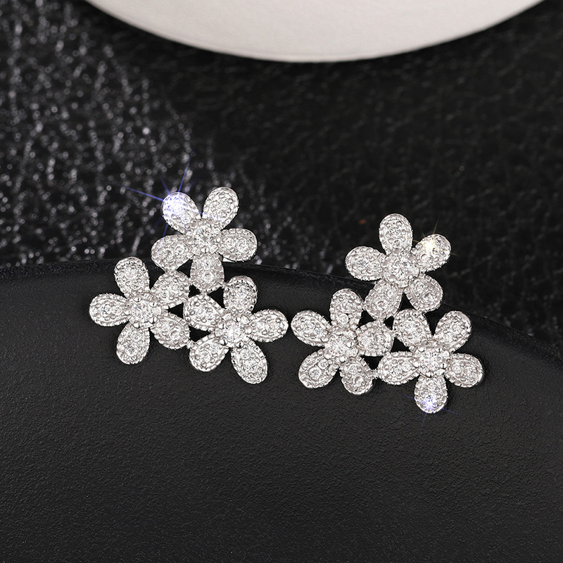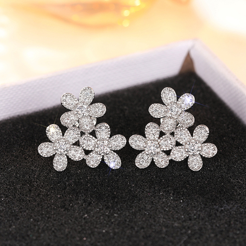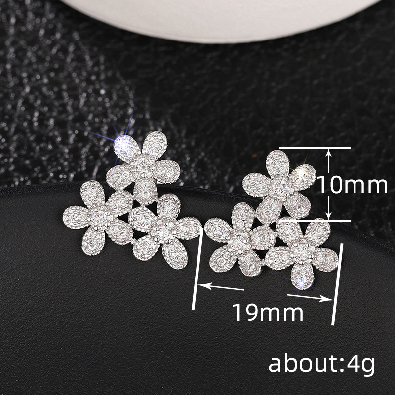 Flower earrings for women, elegant ladies, daily matching earrings inlaid with zircon, popular shining earrings