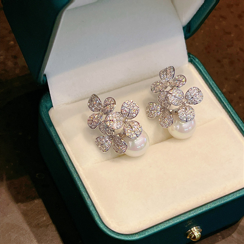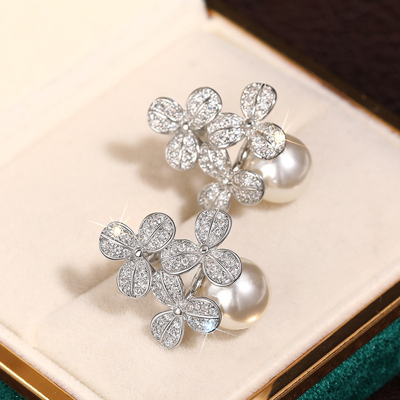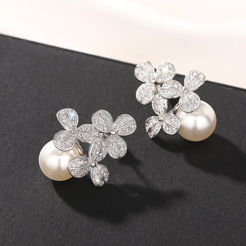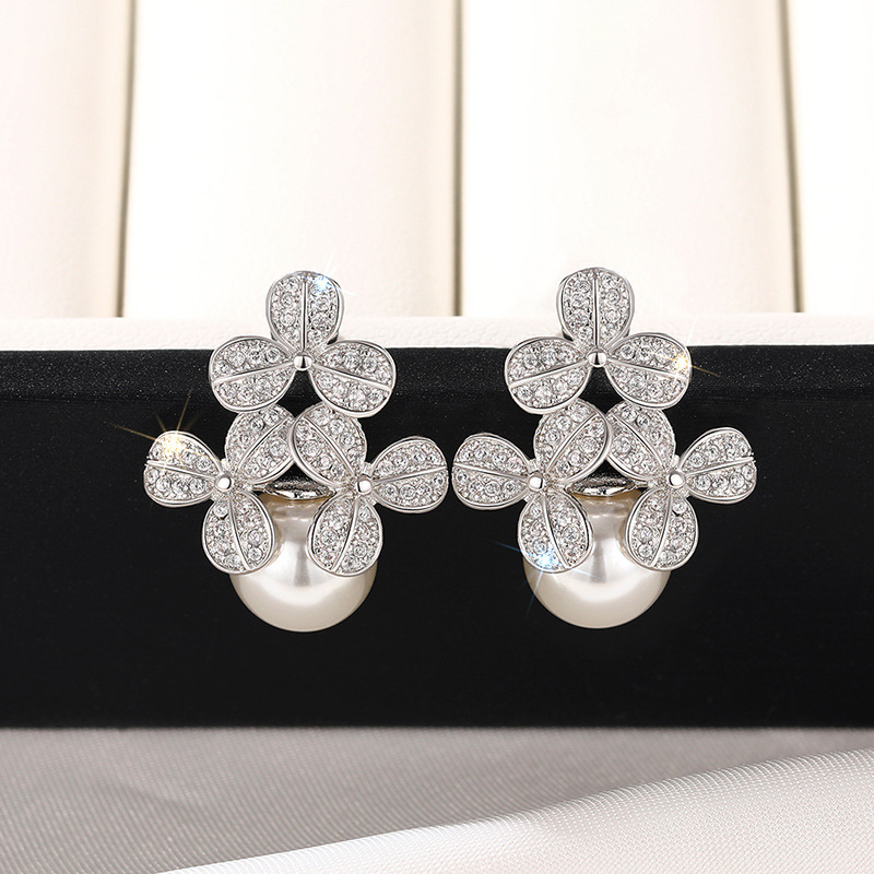 Flower imitation pearl earrings for women, elegant temperament, fresh accessories, small fragrance style, hot selling
