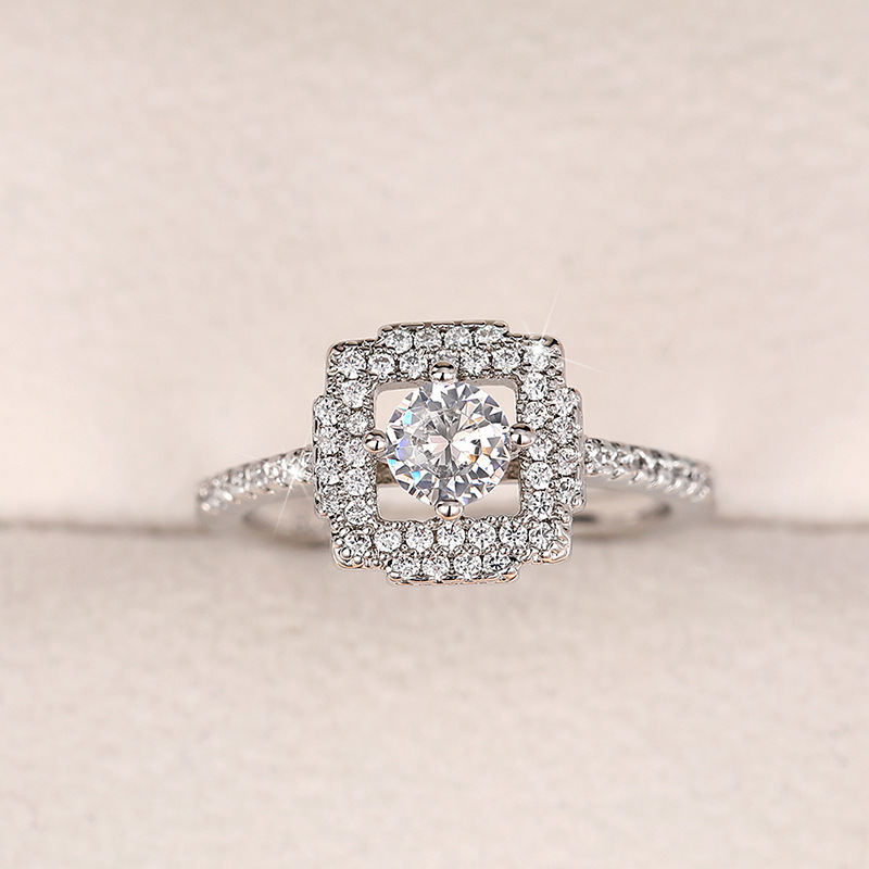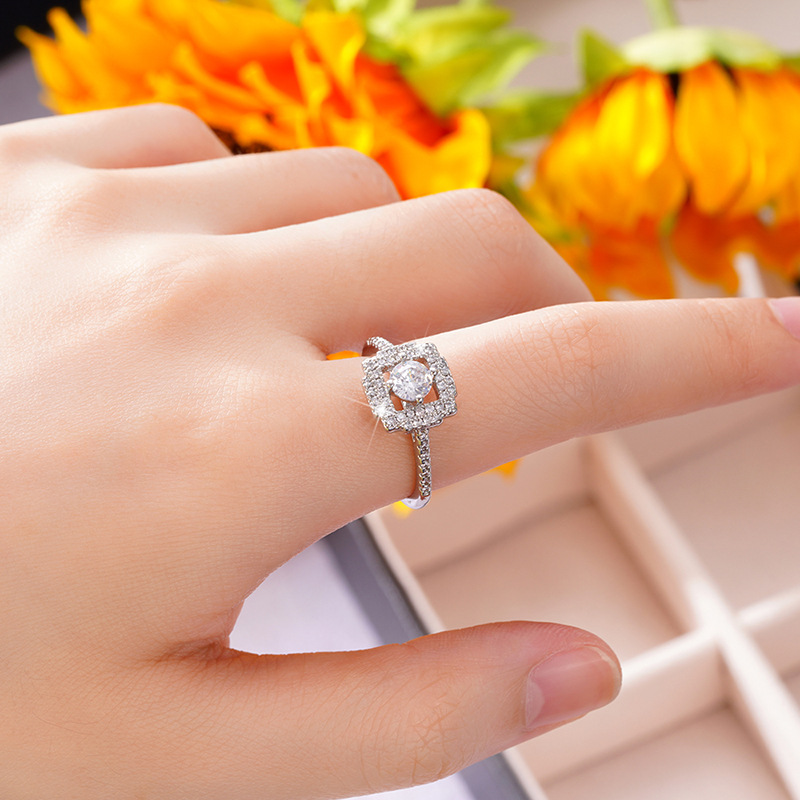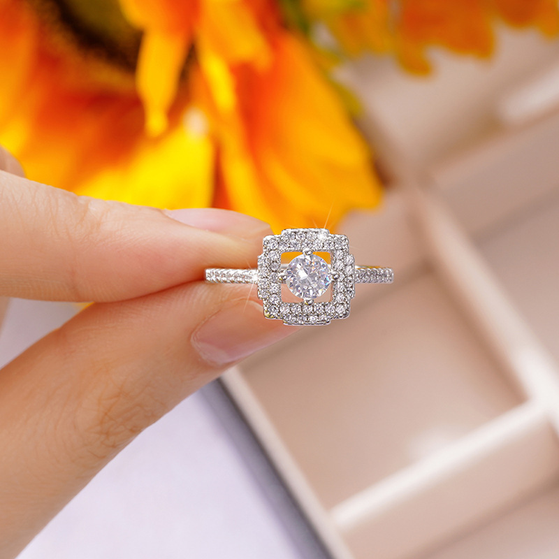 Micro-inlaid celebrity style classic all-match popular ring six-claw zircon wedding ring European and American style light luxury ring