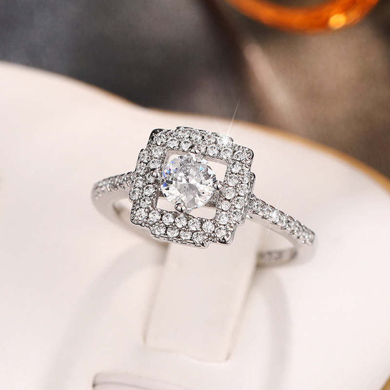 Hot selling new princess square ring European and American hot style inlaid zircon women's jewelry engagement proposal ring