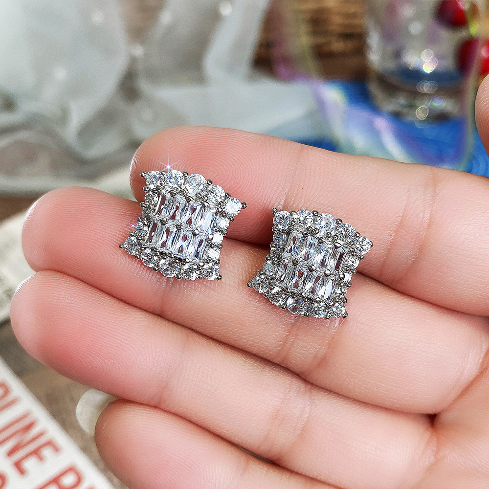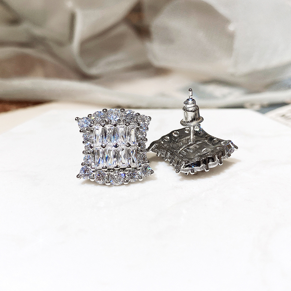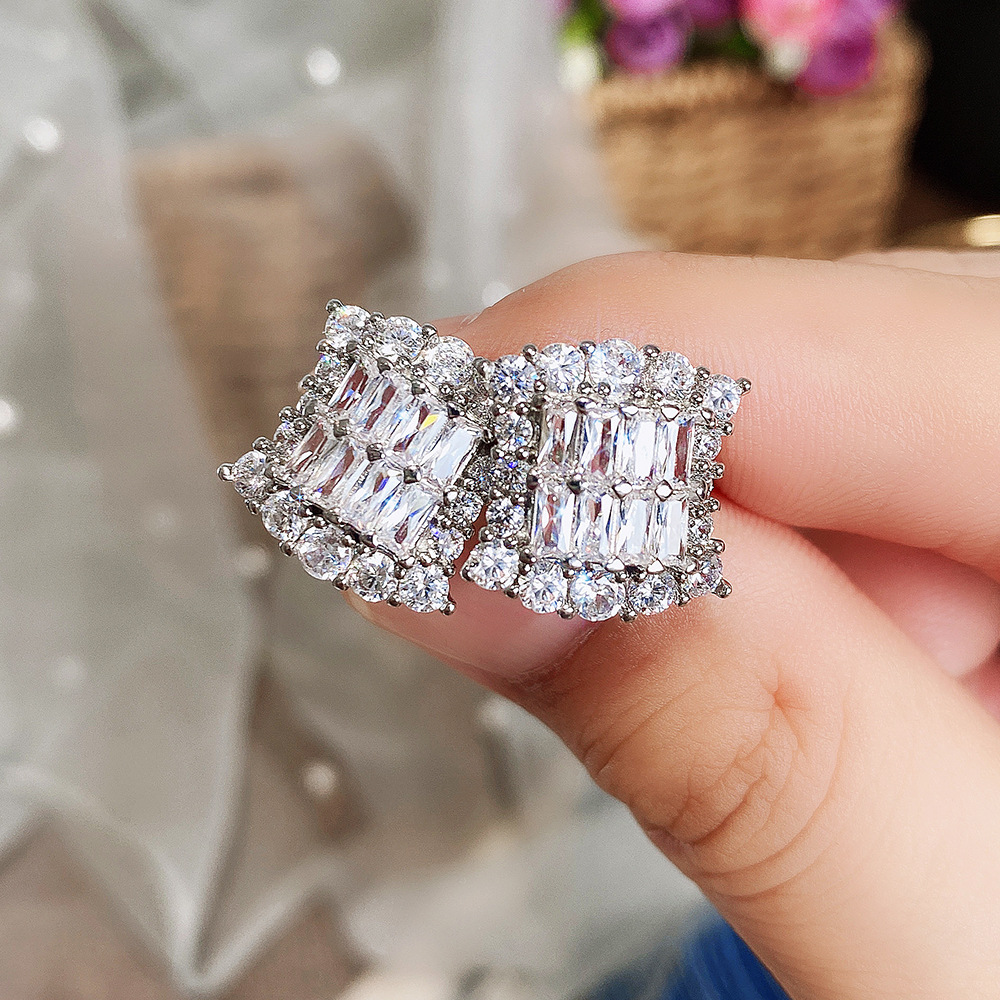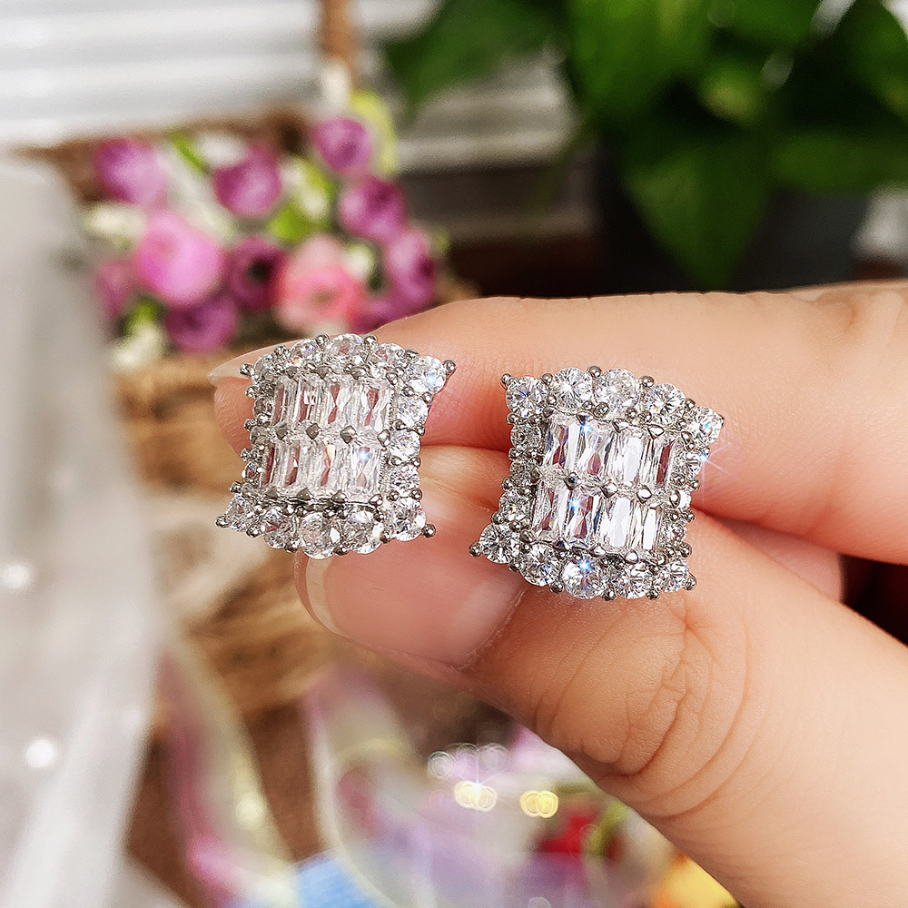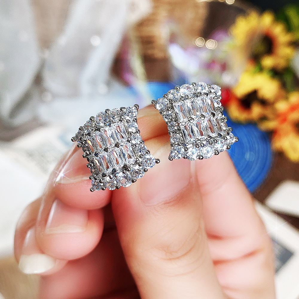 Foreign hot-selling fashionable and versatile square crystal earrings, high-end 3A zircon earrings wholesale