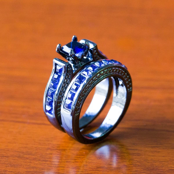 Accessoires à succès, ensembles de bagues pour femmes à la mode, bagues en zircon bleu foncé, fabricants de bijoux à main créatifs en gros