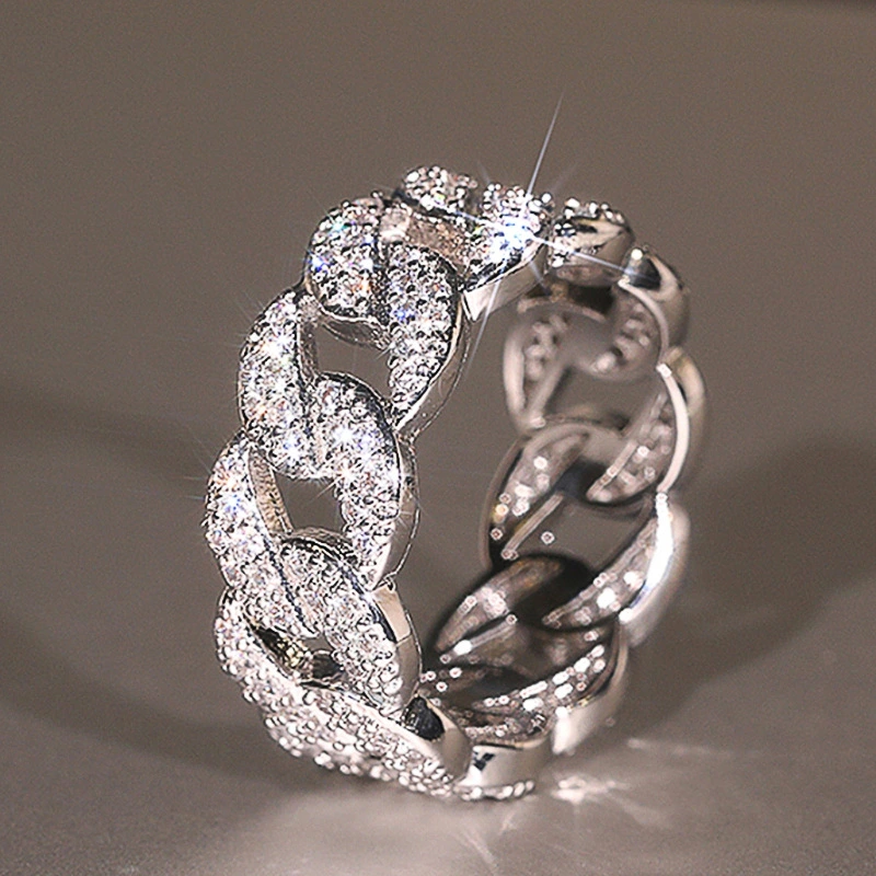 Bague accrocheuse en diamant pour femme, design de boucle de bague personnalisée, style chic et brillant, de luxe et léger