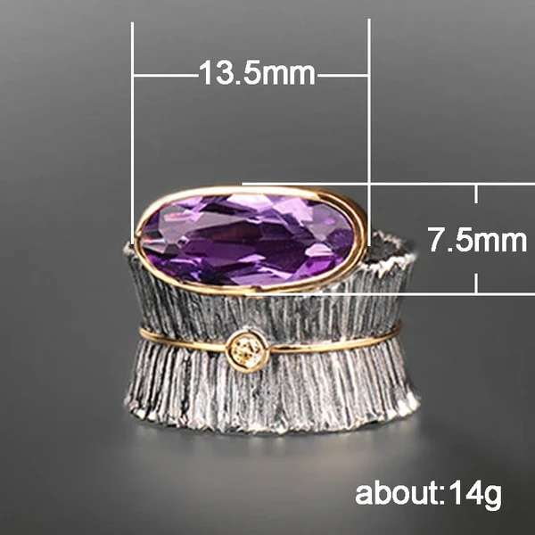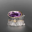 Bague bicolore en pierre violette pour femme, style tendance et tendance
