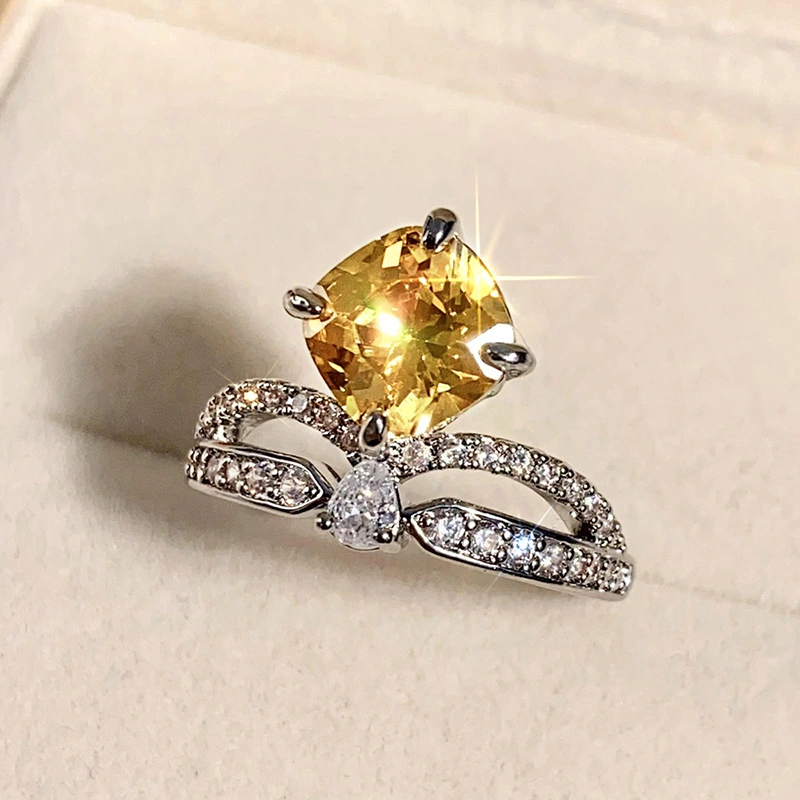 Bague de fiançailles princesse carrée, style européen et américain, incrustée de zircons, bijoux pour femmes