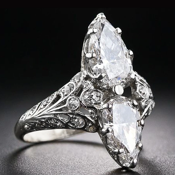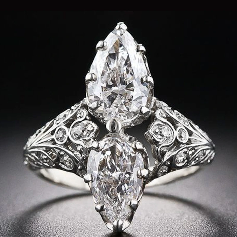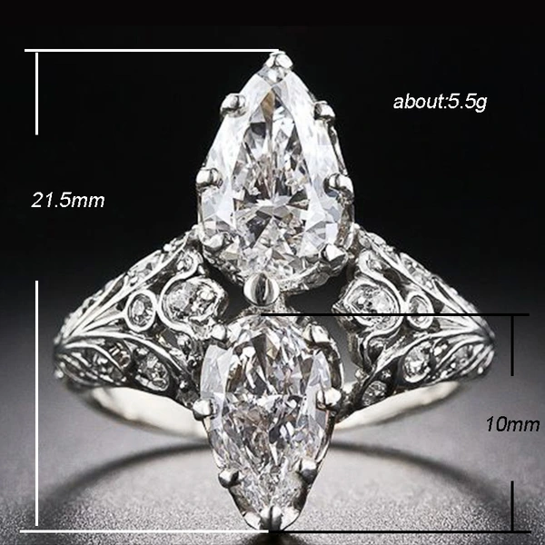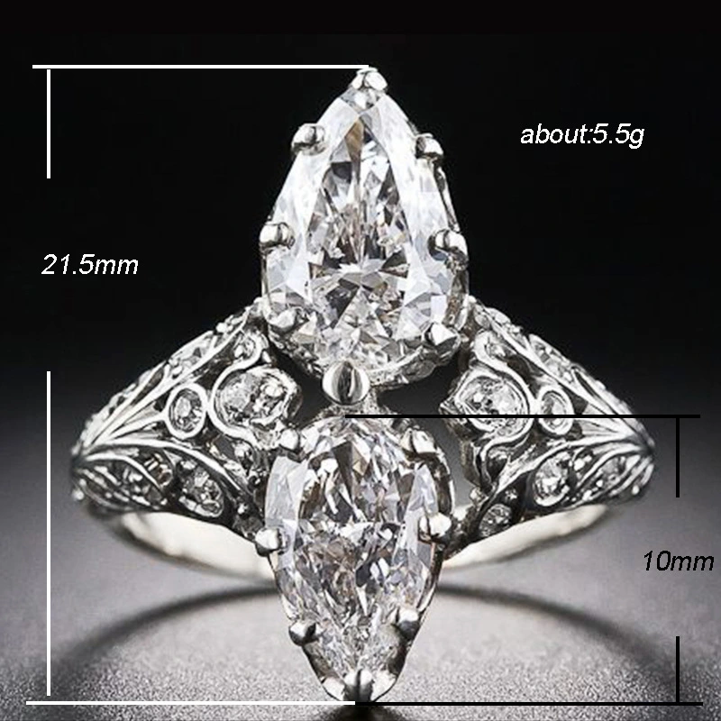 Bague créative en zircon double grande forme de poire, nouvelle mode européenne et américaine pour femmes, vente directe d'usine