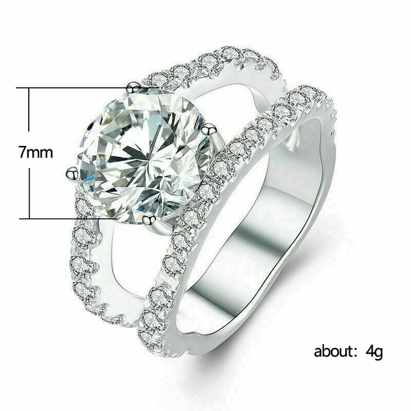 Bague classique à quatre griffes imitation zircon micro-incrustée pour femme, bague de fiançailles à bras torsadé bicolore à double rangée