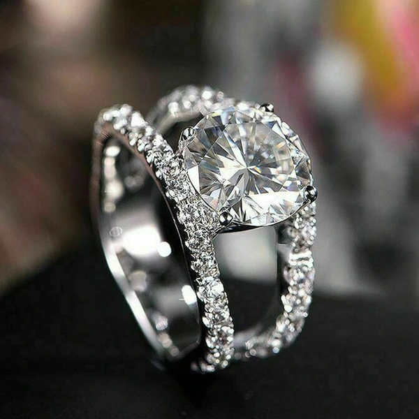 Bague créative en zircon incrusté à double rangée, bijou de mode européen et américain, cadeau romantique pour femme, idéal pour la Saint-Valentin