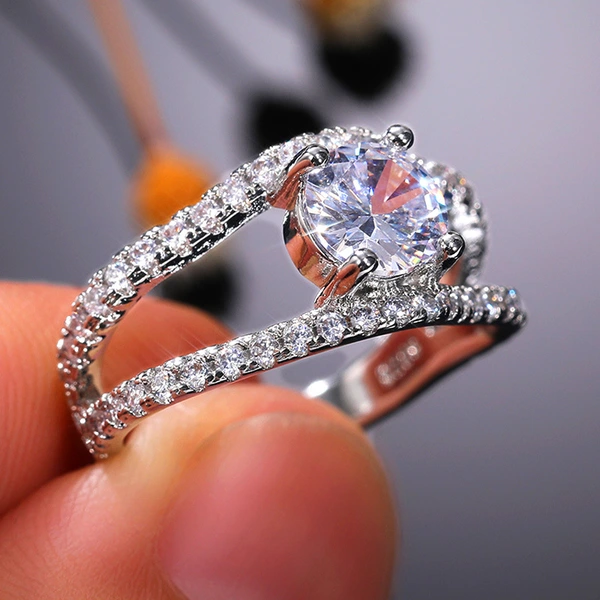 nouvelle bague en zircon creux croix quatre griffes design de mode proposition bague de mariage cadeau d'anniversaire bague