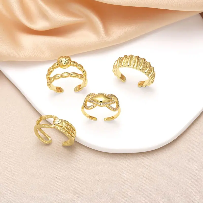 Bague creuse en plaqué or véritable pour femme, bijou double couche en zircone, style rij98