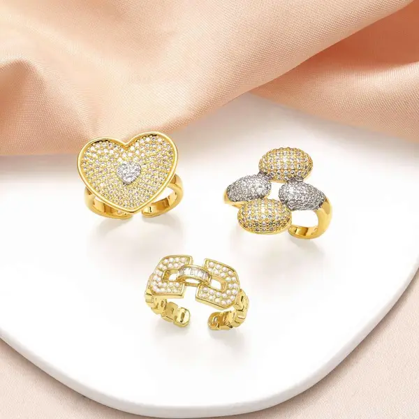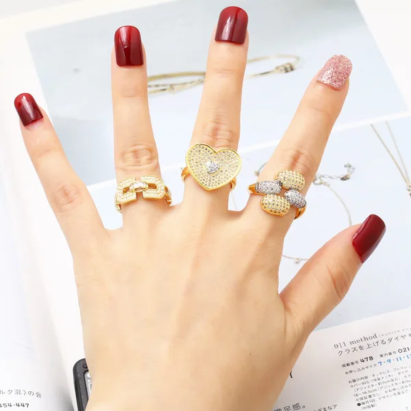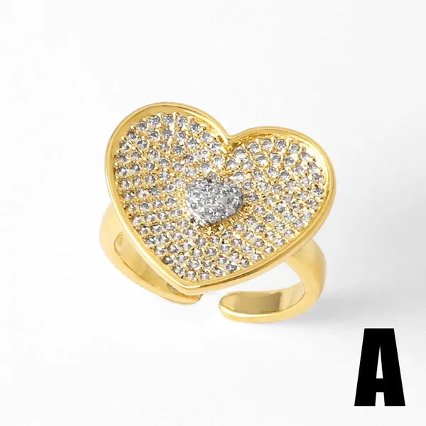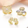 Bague d'amour européenne et américaine pour femme, anneau ouvert en cuivre plaqué or véritable incrusté de zircons rih47