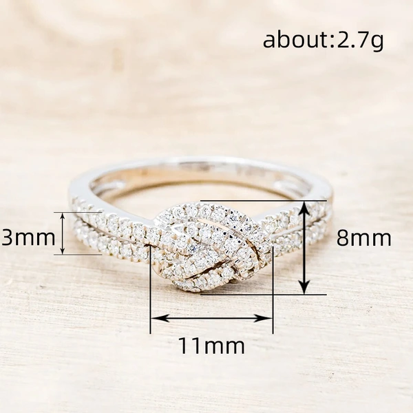 Bague classique à quatre griffes imitation zircon micro-incrustée pour femme, bague de fiançailles à bras torsadé bicolore à double rangée