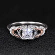 Bague classique à quatre griffes imitation zircon micro-incrustée pour femme, bague de fiançailles à bras torsadé bicolore à double rangée