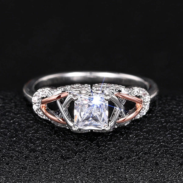 Bague de fiançailles princesse carrée, style européen et américain, incrustée de zircons, bijoux pour femmes