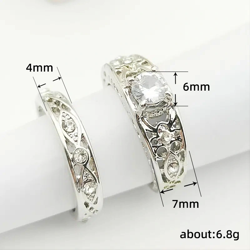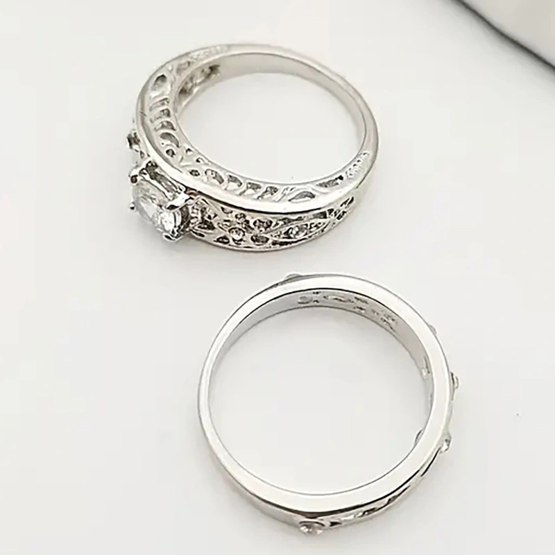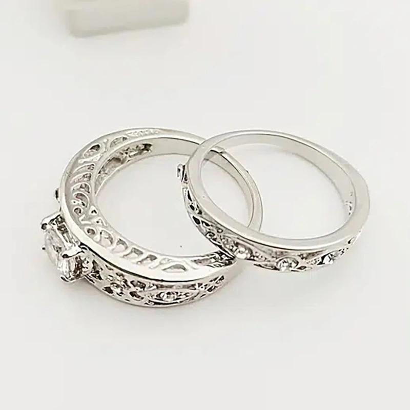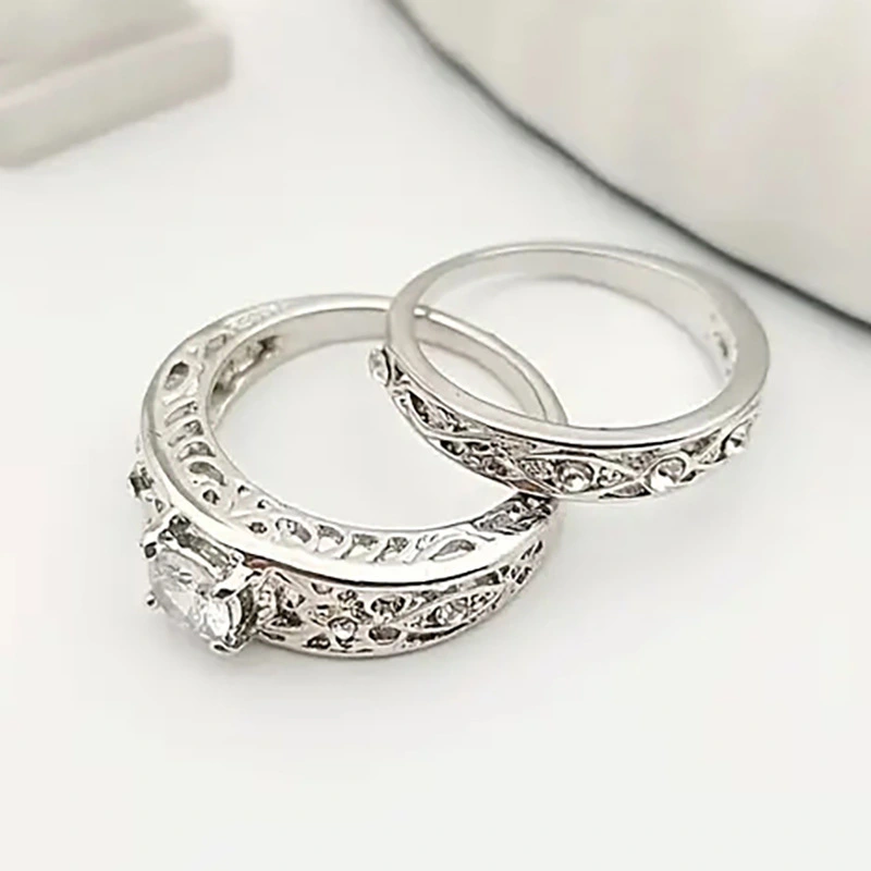 Bague de couple en forme de fleur creuse de style palais, ensemble de bagues pour cadeau d'anniversaire de mariage