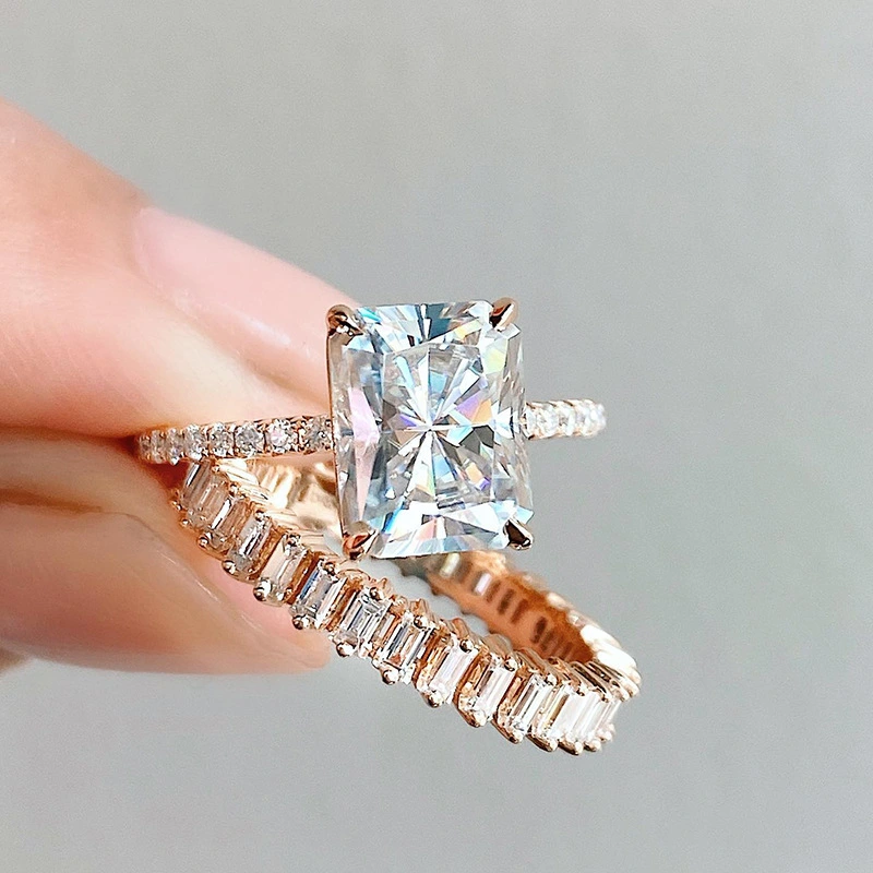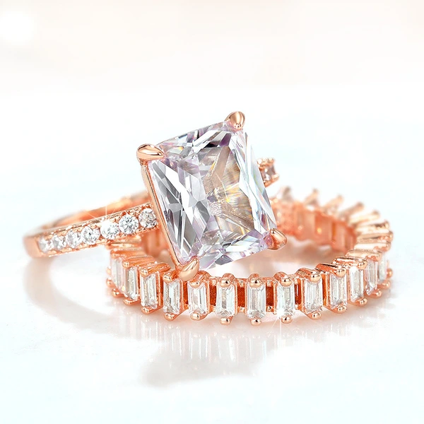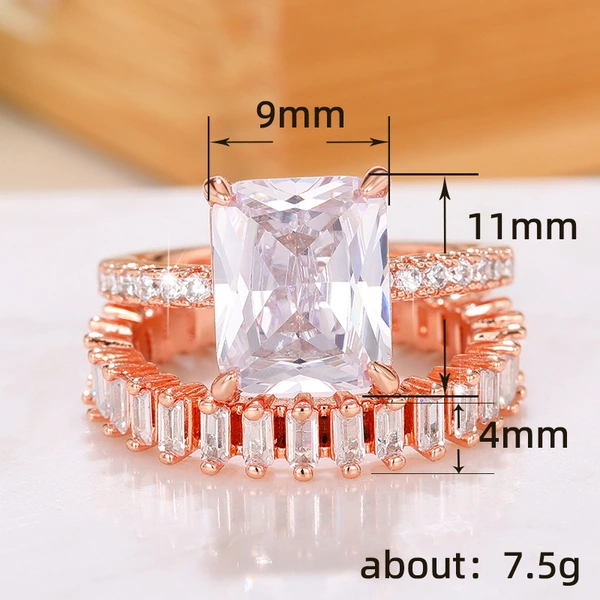 Bague de fiançailles à la mode européenne et américaine, ensemble de bagues de princesse carrées exagérées, cadeau d'anniversaire de mariage
