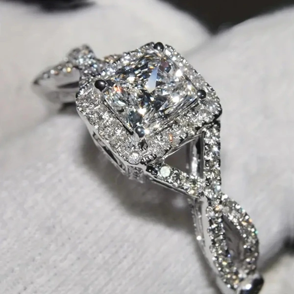 Bague de fiançailles princesse carrée, style européen et américain, incrustée de zircons, bijoux pour femmes