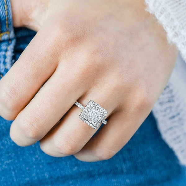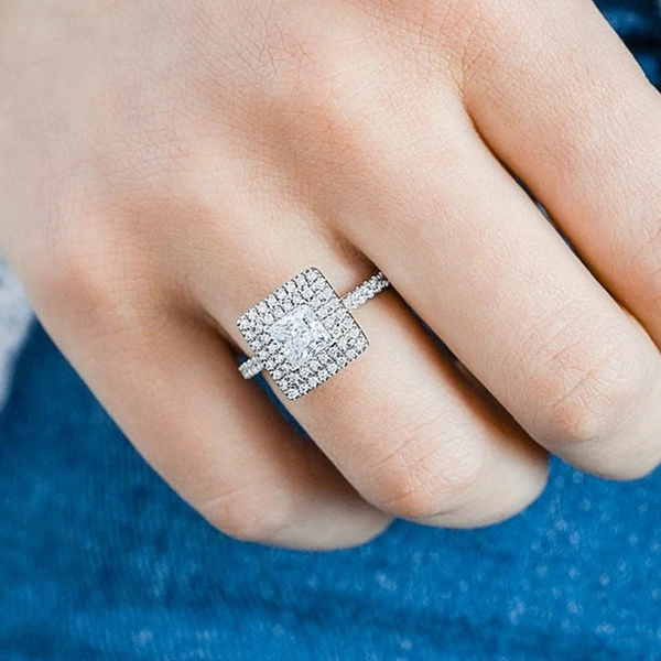 Bague de fiançailles carrée en diamant géométrique classique européenne et américaine pour femme, élégante, offre spéciale