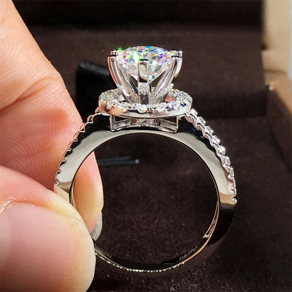 Bague de fiançailles classique en zircon pour femme, bijou de luxe rond en diamant, à la mode, pour mariage, vente en gros