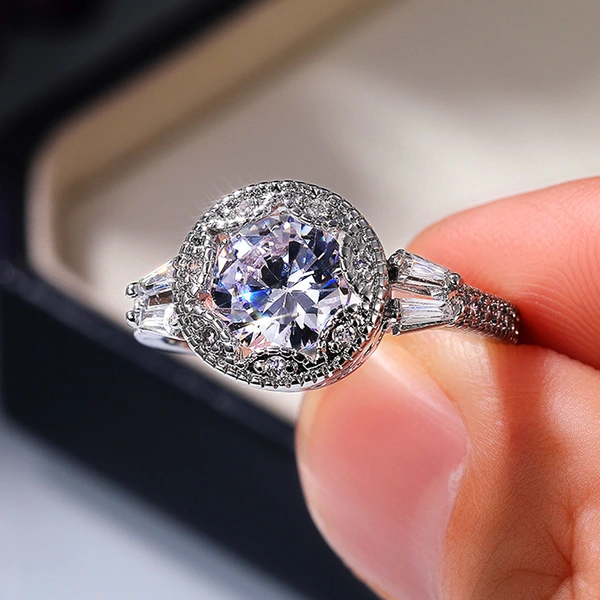 Bague de mariage classique à six griffes en zircon, style célébrité micro-incrusté, bague de luxe légère de style européen et américain