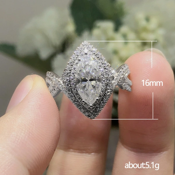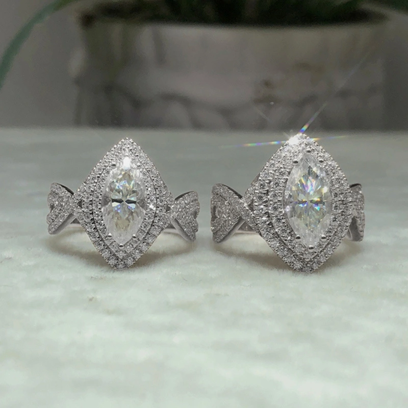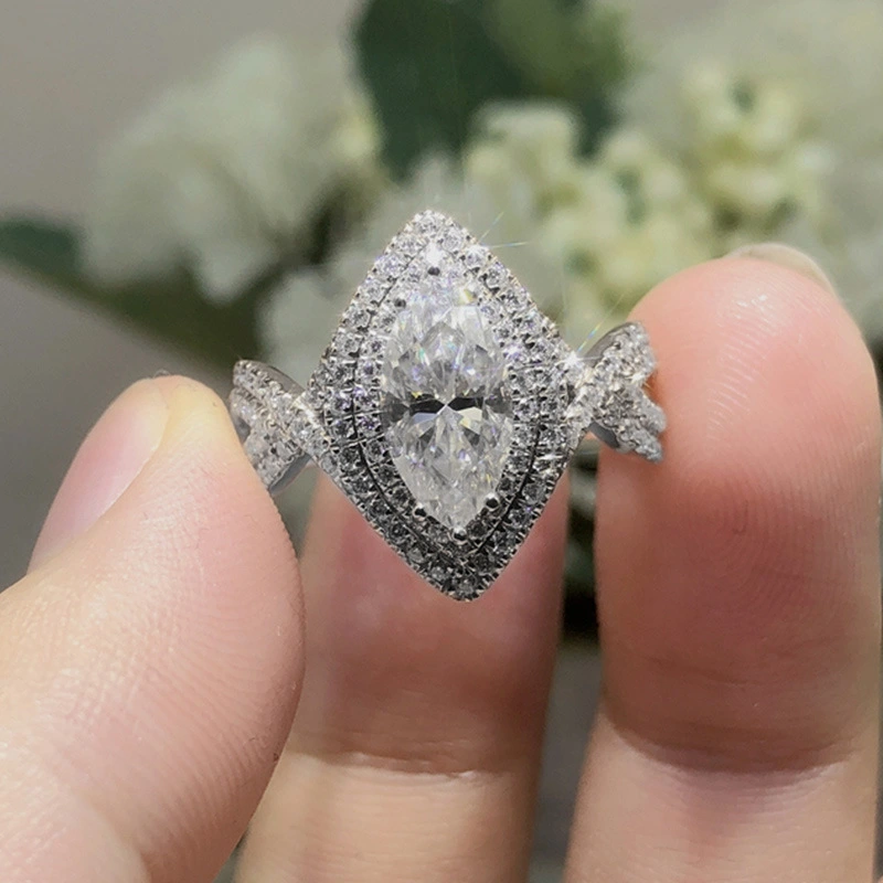 Bague de mariage en zircon brillant œil de cheval pour femme, bijou créatif en direct