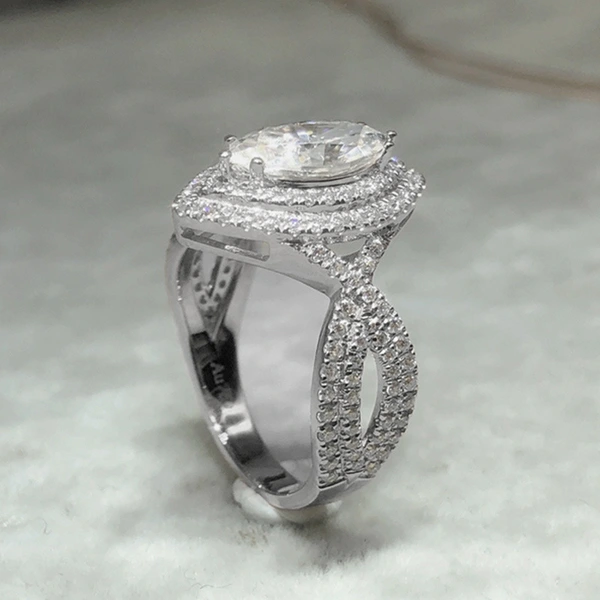 Bague de fiançailles en cristal blanc avec zircon œil de cheval, bijou créatif européen et américain pour femme