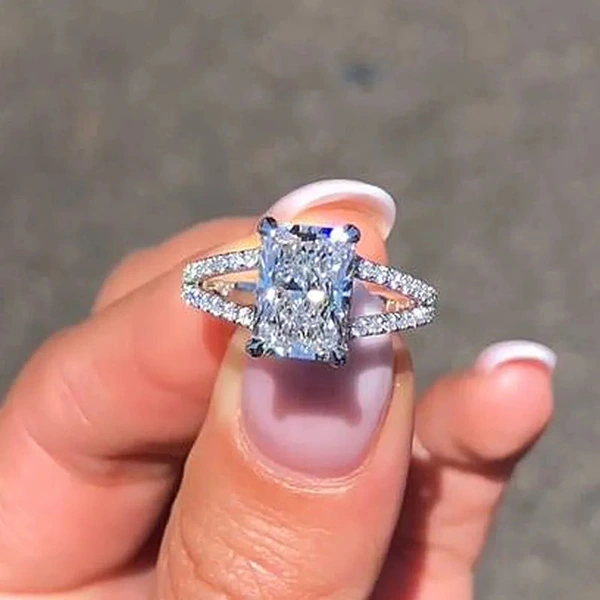 Bague de fiançailles en diamant carré pour femme, nouvelle collection tendance, micro-incrustée, style européen et américain, double couche