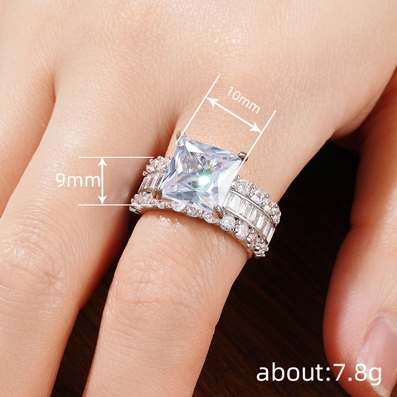 Bague de fiançailles princesse carrée, style européen et américain, incrustée de zircons, bijoux pour femmes