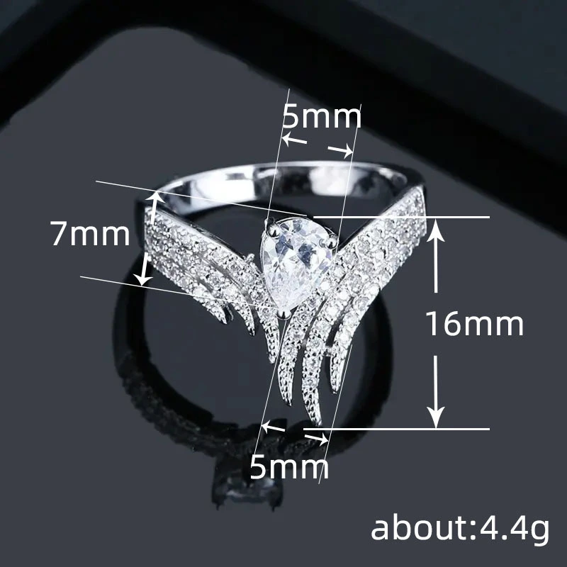 Bague de fiançailles en zircon incrusté de goutte d'eau de style européen et américain, bague de fée de luxe à la mode, bague de mariage pour femme