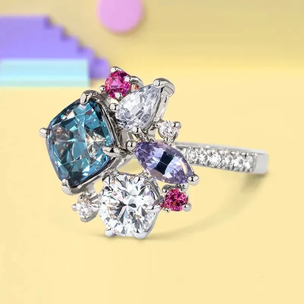 Bague de fiançailles en zircone cubique, style princesse, incrustée de pierres précieuses multicolores, style européen et américain, imitation diamant